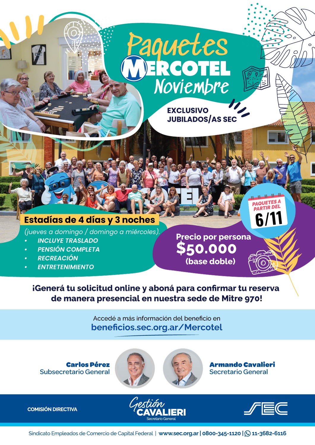 ¡Importante! El beneficio es exclusivo para jubilados y jubiladas SEC, no se permiten invitados.